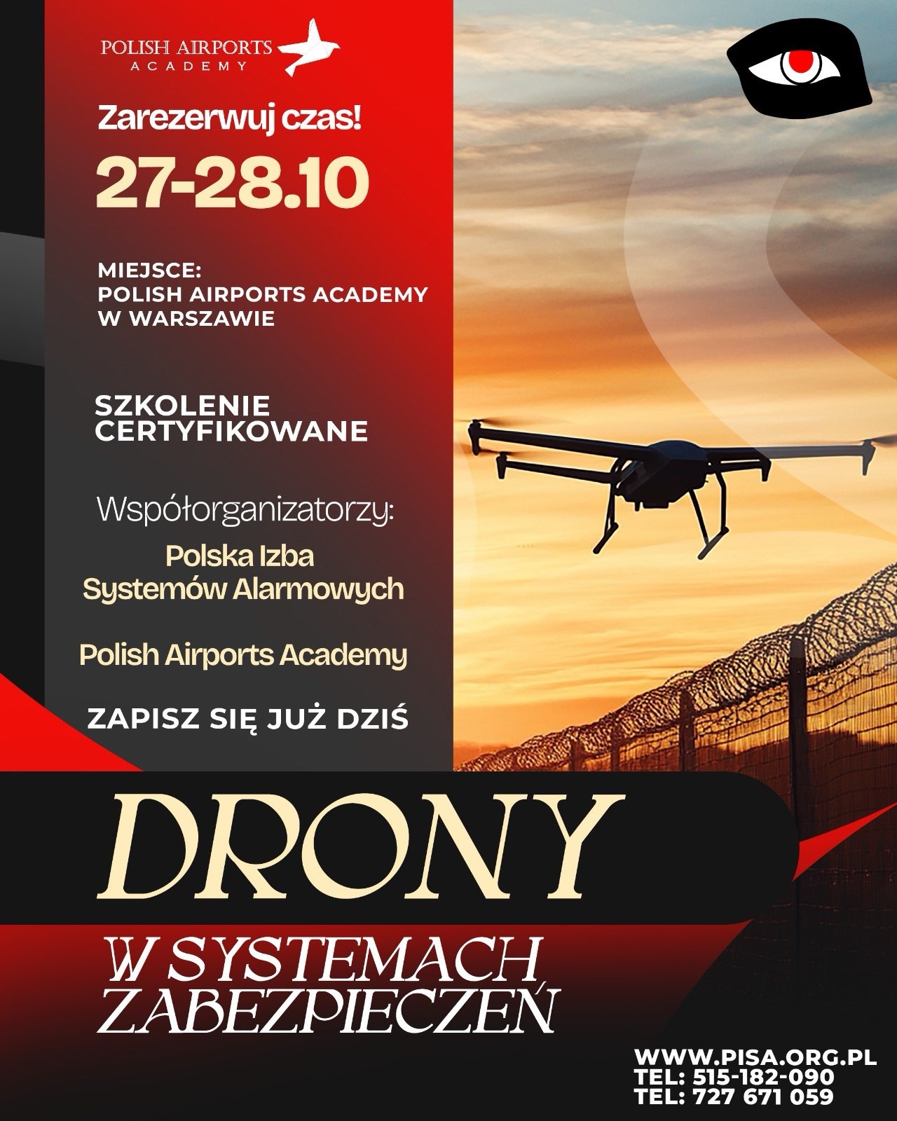 Karta szkolenia (do pobrania): https://pisa.org.pl/wp-content/uploads/2025/09/2025-10-KARTA-ZGLOSZENIA-DRONY-W-SYSTEMACH.doc